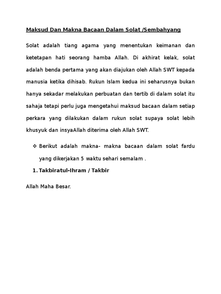 Bacaan Dalam Solat Dan Maksudnya - Semoga kita semua mendapatkan keberkahan di hari yang suci dan senatiasa.. Misalnya bacaan al fatihah, takbirotul ikhram, shalawat, tasyahud dan juga salam atau ayng lebih dikenal dalam ilmu fiqh sebagai rukun qouli shalat. Kalau belum baca artikel ini ya sampai selesai, biar kita menjadi lebih semangat lagi dalam melaksanakannya. Sedangkan, definisi sholat menurut istilah adalah serangkaian kegiatan ibadah khusus yang diawali dengan takbiratul ihram dan diakhiri dengan membaca salam. Insya allah denga mengamalkan dan membiasakan wirid, dzikir dan doa seperti di atas secara rutin, hidup kita menjadi lebih mudah dalam segala hal dan selalu mendapat. Bahkan secara pemaknaan sholat lima waktu itu adalah dzikir dan cara berdoa yang terbaik bagi setiap hamba, karena didalam bacaan sholat itu.