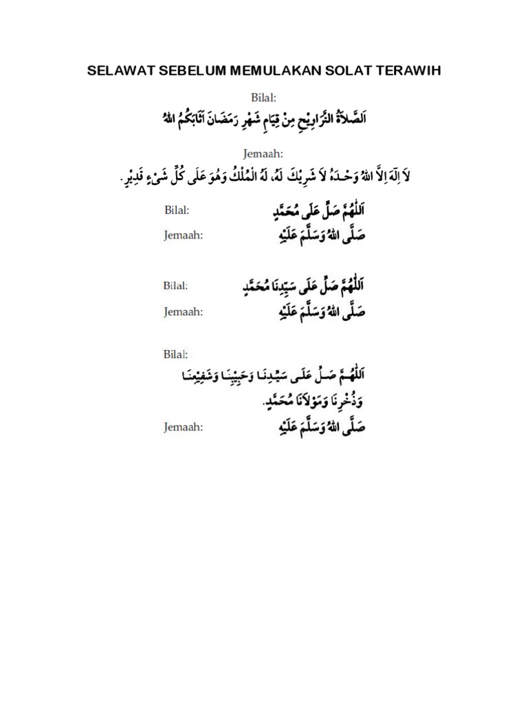 Bulan ramadhan akan tiba dalam beberapa hari lagi, masih ingat panduan / cara solat tarawih? Urutan bacaan ini disusun secara teratur dan dipermudahkan dengan ejaan rumi bagi membantu para pembaca. Panduan bacaan surah pendek dan mudah untuk solat terawih di rumah bersama keluarga. Bacaan selawat solat tarawih 8 rakaat muka belakang (brochure). Panduan cara solat sunat tarawih ini juga dipermudahkan dengan ejaan rumi untuk membantu sesiapa yang mengalami kesukaran membaca tulisan arab. Panduan bilal solat tarawih | ڤندوان بلال صلاة تراويح mp3 duration 11:09 size 25.52 mb / inteam digital 8. Panduan lengkap niat solat terawih dan cara solat tarawih di rumah. Rindu bulan puasa sholawat tarawih. Blog utama bagi penjenamaan oh! Selawat juga untuk bilal keluarga. Download lagu selawat solat tarahwih mp3 gratis dalam format mp3 dan mp4. Insya allah akan dibahas secara lengkap dalam artikel ini. Selawat juga untuk bilal keluarga.