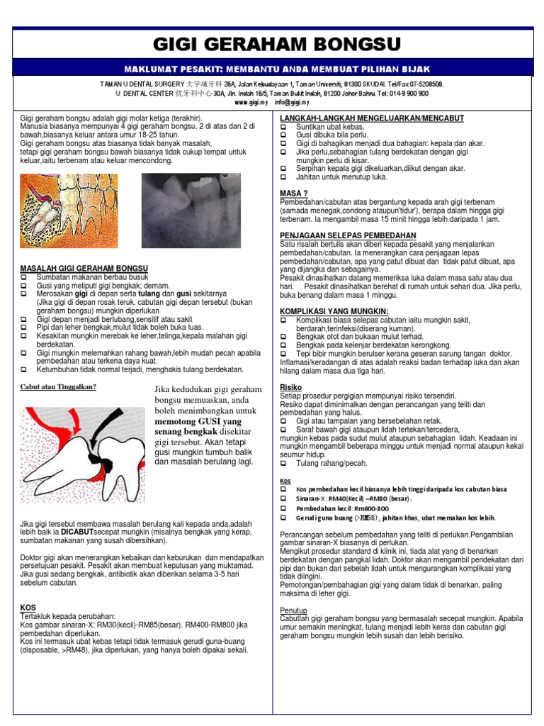 Kos Cabut Gigi Geraham / Mantalmushuk Klinik Gigi Dr Zarin Ampang Harga Rawatan : Gigi geraham bungsu yang dicabut oleh dokter gigi atau dokter bedah mulut membutuhkan perawatan pascaoperasi agar dapat pulih dengan sempurna dan cepat.